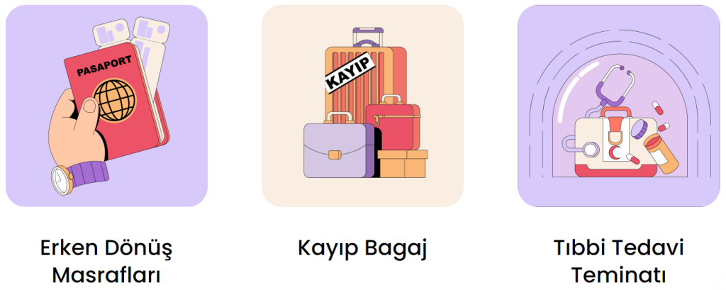 - Mali Kayıplarınızı Minimum Seviyeye İndiren Ek Teminatlar: Panda Sigorta’nın poliçelerinde yolcuların mali kayıplarını en aza indiren ek teminatlar da bulunmaktadır. Gecikmiş bagaj organizasyonu, bavul kaybı veya hasarı durumunda bavul ve içindeki eşyaların masrafları, erken dönüş masrafları gibi teminatlarla seyahat sırasında oluşabilecek maddi kayıplarınızı güvence altına alabilirsiniz.